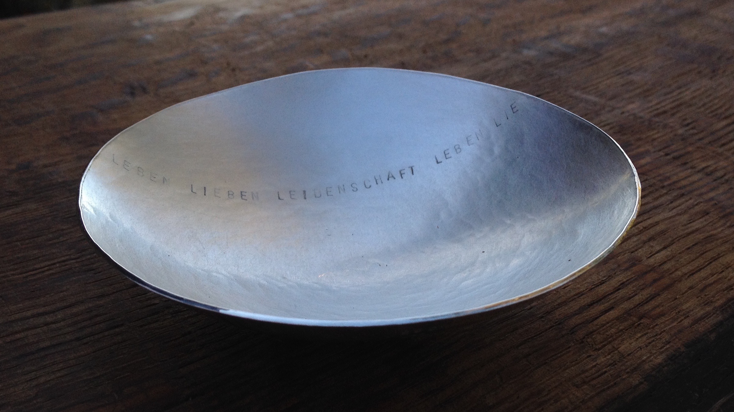 Schale / Leben –Liebe- Leidenschaft /999 Feinsilber / getrieben / Durchmesser 100mm / 66 Gramm.